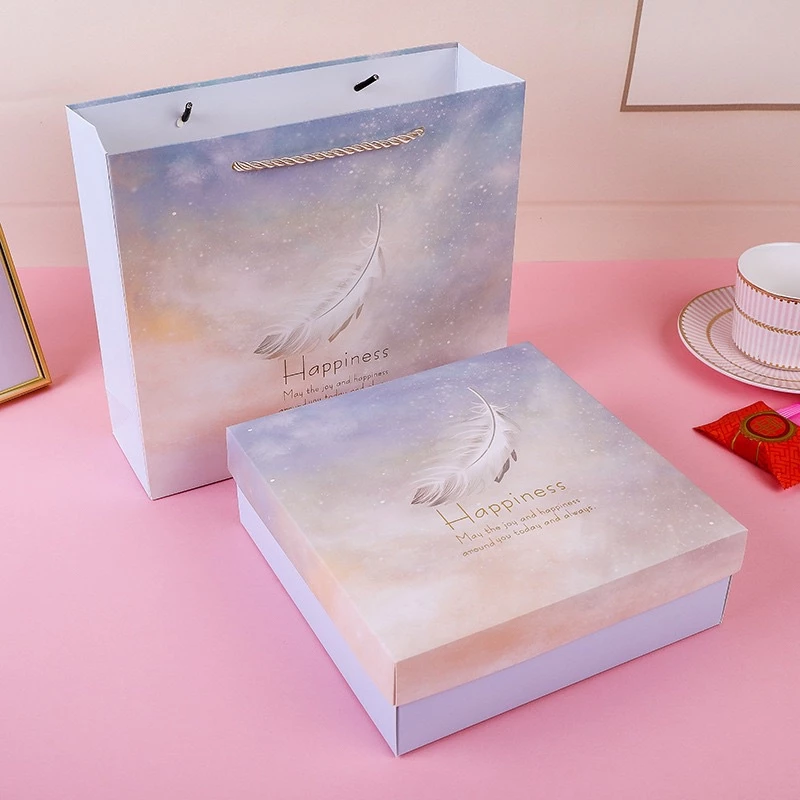 กล่องของขวัญพร้อมถุงขนาดใหญ่ สีพาสเทลโพนี่