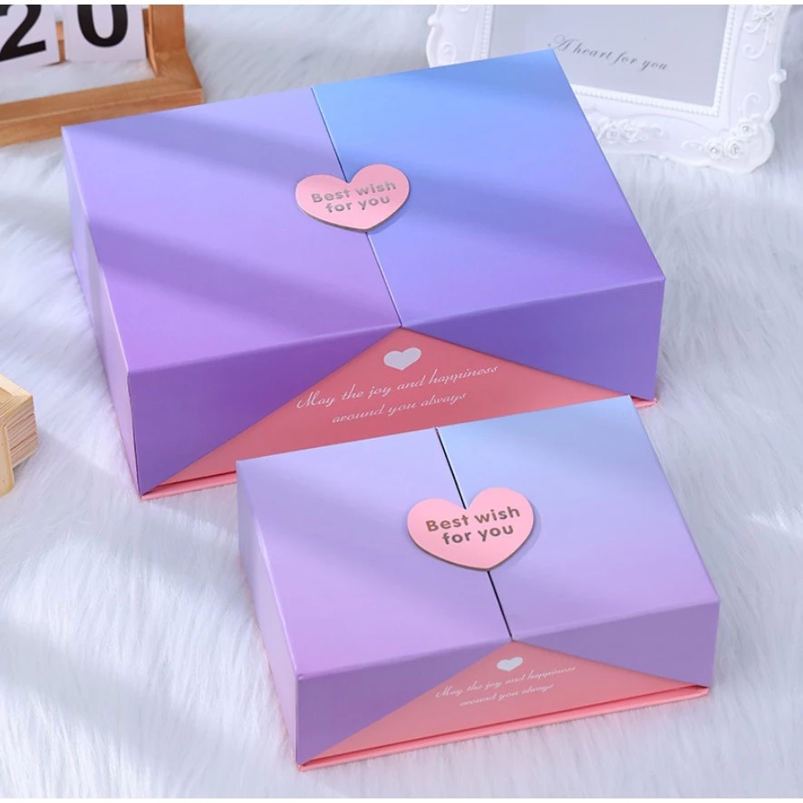 เซ็ทกล่องของขวัญขนาดกลาง และใหญ่ สีสันสดใส ชมพู ม่วง เปิดผ่าด้านบน